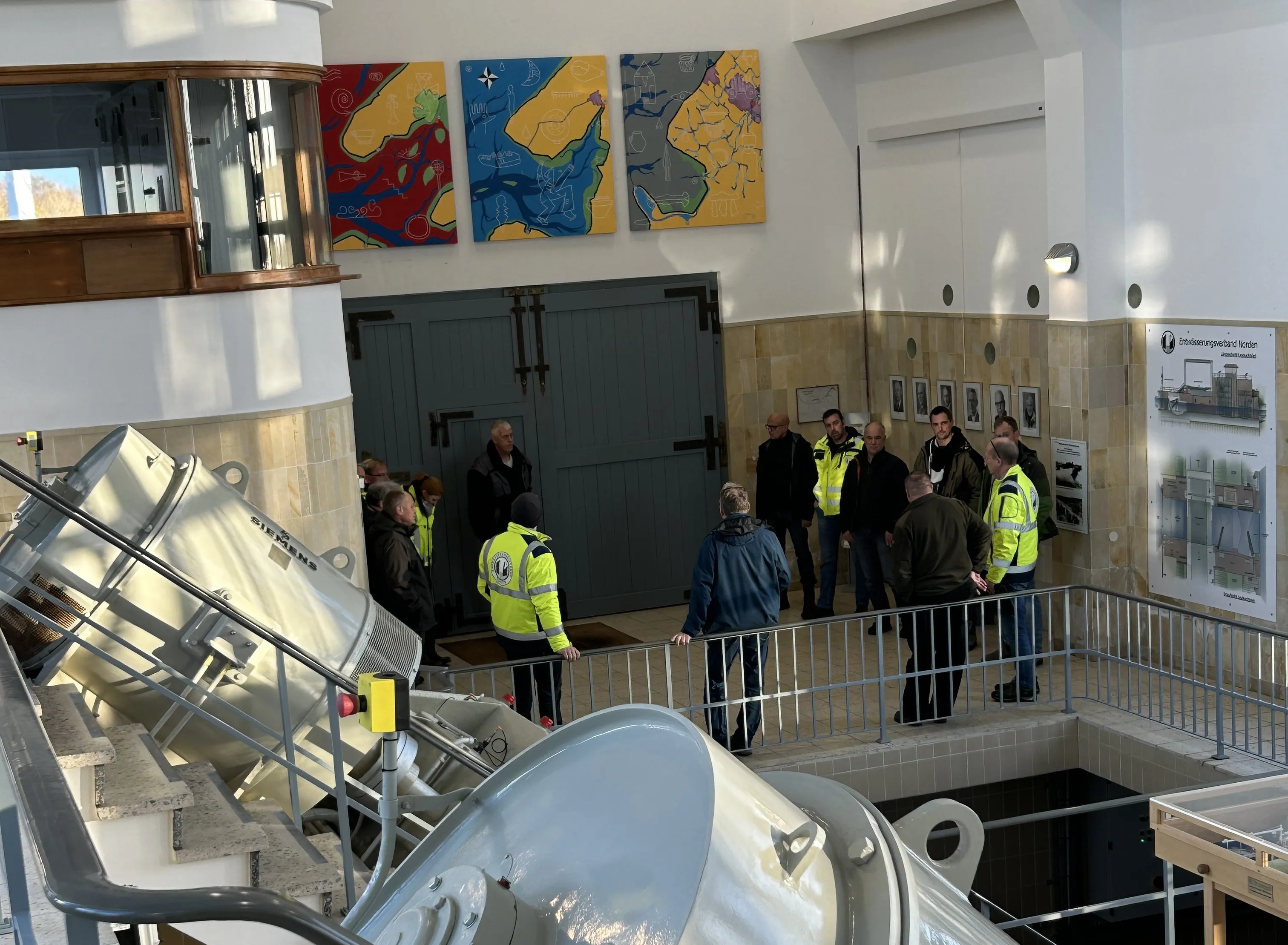 Im Laufe des Vormittages wurde dann auch das Schöpf- und Sielbauwerk der Deich- und Sielacht Norderland in Neuwesteel angefahren. Schöpfwerksmeister Ingo Groenewold empfing die Teilnehmer der Schau und führte diese durch die sehr ordentlich unterhaltenen Anlagen.