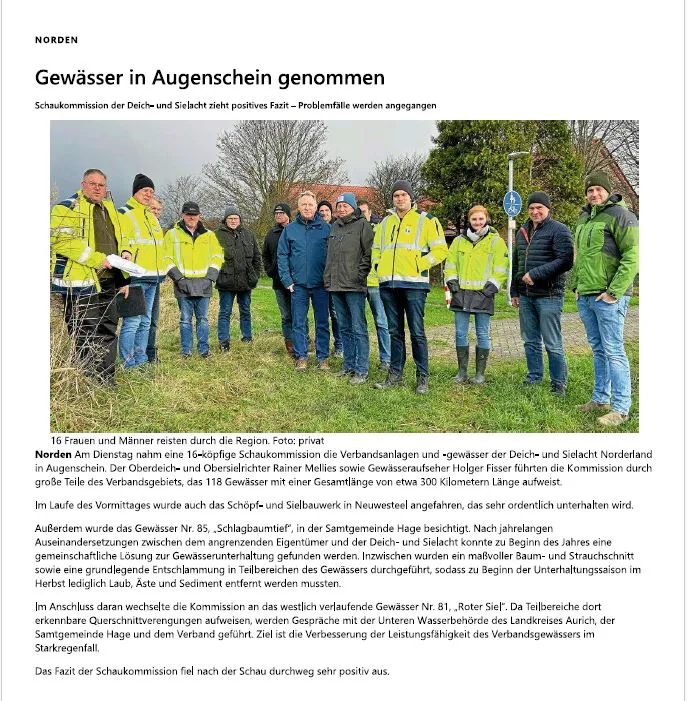 Aktuelles - Gewässerschau im Verbandsgebiet der Deich- und Sielacht Norderland